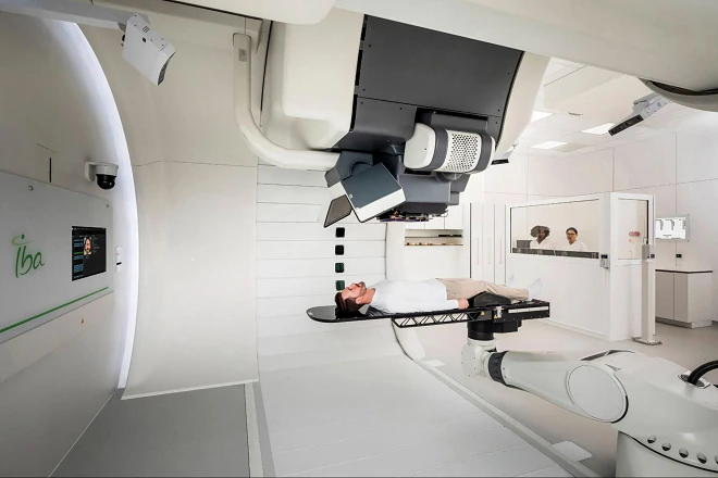 Le ProteusONE de CYCLHAD associe technologie de pointe et confort patient. Son design lumineux et incurvé, avec accès à 360° autour de la table, facilite la présence du personnel et des proches. Grâce à son système d’imagerie intégré, le positionnement est vérifié directement en salle. Ses multiples degrés de liberté de la table de positionnement et du faisceau permettent de traiter toutes les indications éligibles à la protonthérapie, dans un environnement à la fois précis, sûr et apaisant.